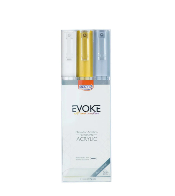 Sabe aquela superfície escura que merece uma customização? A Brw agora tem um kit perfeito com 3 marcadores acrílicos 4g com ponta 3mm. Com tinta permanente em colorações incríveis: prata, dourado e branco. Para deixar tudo ainda melhor, a ponta é versátil: de um lado redonda para escrita e contornos e do outro lado a ponta é chanfrada para preenchimentos uniformes.