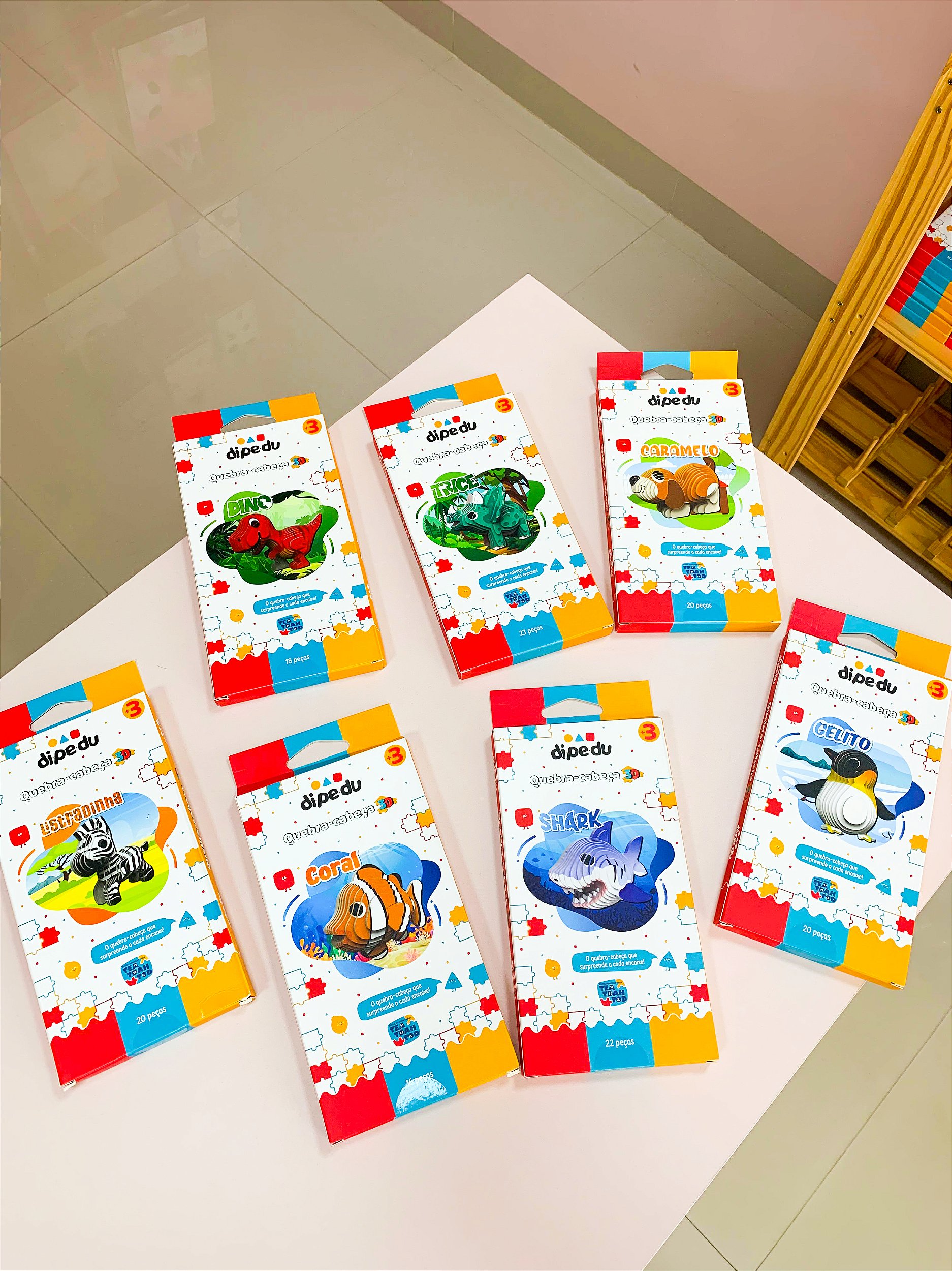 Os quebra-cabeças 3D da Dipedú estimulam a criatividade, coordenação motora e raciocínio lógico das crianças, transformando peças em incríveis figuras tridimensionais.